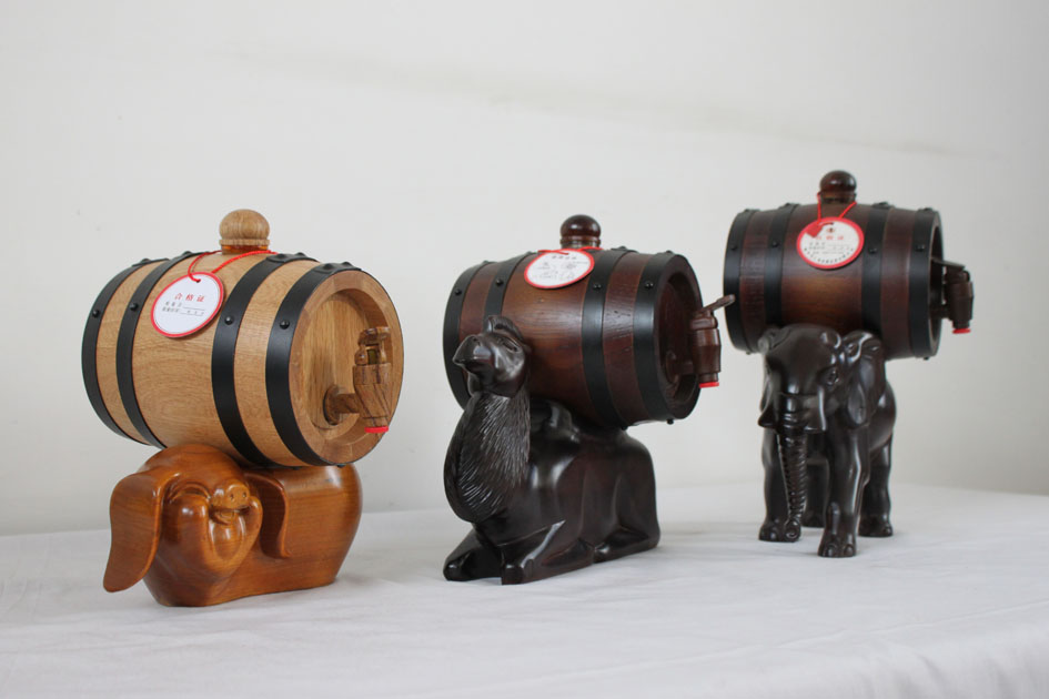 手工打造,不斷發(fā)展 把挑選的木材進行品質,我們只使用品質好的原材料進行裁切打磨,每一塊二木材必須要平整統一,這樣在材料無蠟拼接時才可以無縫隙。為了使產品在日后使用時更長久衛生,拼接成型的產品還要進行高溫預熱、殺菌、安裝端板等系列強化程序。至此,雛形產品便加工完成。為了使產品更加美觀牢靠,還要經過磨砂拋光、烘烤碳化、壓箍等工藝進行美化、增加強度的處理,經過的純手工處理后的酒桶才可以經得起歲月考驗。